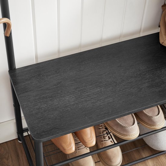 Stel Notificatie voor Product in: ACAZA XL Garderoberek - Kapstokken - Kapstok staand met Schoenenrek - 85 x 32 x 175 cm - Zwart - €55,99