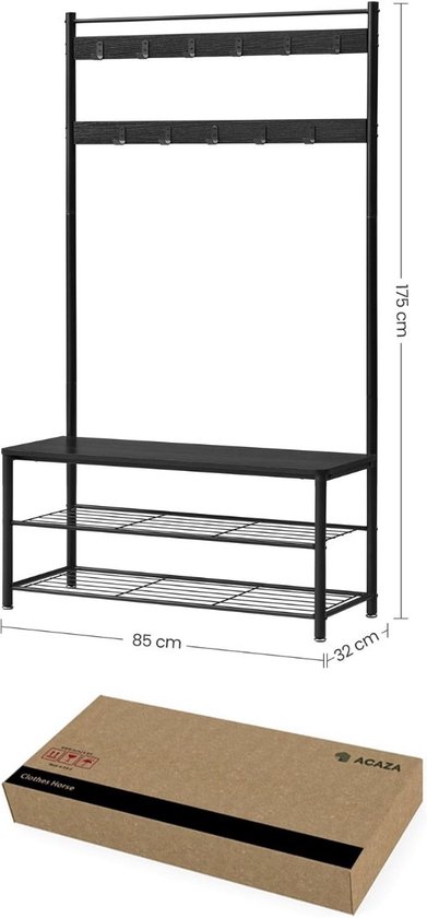 - At bol.com you can purchase ACAZA XL Garderoberek - Kapstokken - Kapstok staand met Schoenenrek - 85 x 32 x 175 cm - Zwart for only €55,99